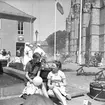 Krämaren 5 år 26 mars 1968 En man står vid en pelare med en kamera. Två pojkar sitter i trampbilar med ballonger och spargris. En flicka har en dockvagn och en annan flicka sitter på en gunghäst.