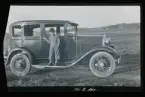 Ett sällskap porträtterat vid en bil. "Fridas släktingar från Dunker, foto 1924."