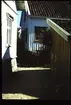 Enligt text som medföljde bilden: "Kyrkogatan-Kyrkogången 1862, Foto Curman. Reproduktion M. Jacobson Nr. 2 i albumet." Enligt text som har ristats i emulsionen. "Curman foto 1861 no. 2 original hos Fru Bundsen, Kyrkogatan år 1861 Kyrkogatan 1861.