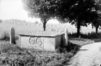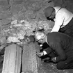 Landsantikvarie Ullenius och överste Bratt vid öppning av Brattska gravkoret på Senäte, Kållandsö, 1964.