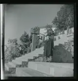 Stenhuggare Johansson med pojke på spark. Bilden tagen den 2 januari 1919.