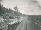 Station anlagd 1894. En- och enhalvvånings stationshus.
