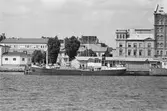 Hamnen, Enköping, vinter, vy från söder, troligen 1913. Ångbåtarna Enköping II och Ivar Blå vid kaj. Skymtandes t. h. upplagd, ångbåten Fagerudd.
