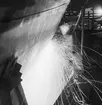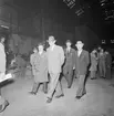Varvspersonal vid ubåten HVALENs torn. Varvet Fiat-San Giorgio i bakgrunden.
