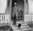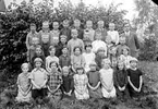 KYRKSKOLAN I LYRESTAD. LÄRARE GÖSTA HULTGREN MED SIN KLASS PÅ SKOLANS TRAPPA.