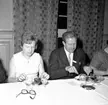 Svenska Byggnadsarbetareförbundets avdelning i Skara. Vid jubileum 25/10 1964 lyssnar från vänster Nils Liedberg, fru Österlund, okänd samt Erna Ungh på talare.