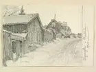 Teckning av Ferdinand Boberg. Visby, St. Hansgatan