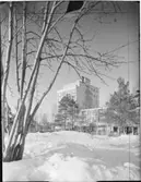 Banbyggnad. På bilden ser man 2 SJ OC ånglok med 2 lastade godsvagnar.