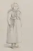 Anna Jöns Dotter från Brösarp, Albo Härad. Kvinna i dräkt, stående i helfigur Blyertsteckning av O.Wallgren