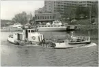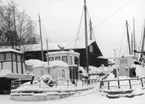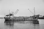 T.v. lastångfartyget ANNETTE av Åbo, t.h. lastmotorfaryget HILDE FELTER av Lübeck i Öresundsisen 1963.