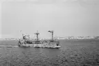 Foto i svartvitt visande last-& passagerarmotorfartyget "BORINGIA" av Köpenhamn i Köpenhamn under 1930-1940.