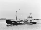 Enligt fotografens notering: "Gay Viking den mest kända kullagerbåtten, se mitt häfte med samma namn". Enligt text på bilden: "Så här såg hon ut. Den mest berömda blockadbrytaren "Gay Viking", som sedermera blev passagerarebåt på Bohuskusten och i Öresund innan den via Danmark hamnade i Västindien. Med sitt ringa djupgående flöt hon över minfälten med sitt mahognyskrov, utrustad med radar och motorer på 3.600 hästkrafter. (Foto: Beken of Cowes)