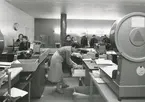 Posthuset Rödbodtorget, Stockholm 1903. Postkontoret Stockholm 1. Ank. afdeln.: poste restante. Personalen fr.v. Lindqvister, A. Nilson, R. Hellhoff, Stenström, J. Swensson, G. Juhlin, J.F. Jansson, J.E. Gustafsson, J. Lidström.