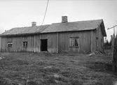 Värmland, Fryksdals härad, Lekvattnets socken, Poptorp. Rökstuga med uthus och källare. Teckning av Ferdinand Boberg