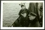 Bilden förställer en grupp ubåtsmän på däck av ubåten valen tills sjöss.