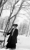 Gamla Riksvägen - Centrum Ulla Britt Karlsson g. Jägrud f. 1928 I bakgrunden: Kommunalhuset, flickhemmet, ladugård och bostadshus Streteredsvägen 1-3, samt Villa Brattås. T.h Oskar Larssons hus och del av växthus Solängs plantskola. Nu Kållered centrum.