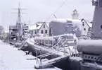2 st lotsbåtar liggande vid stumholmsbryggan vintertid.