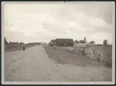Hjuldon för åktransport. Östergötland. Kinda hd. Vårdnäs sn. Brokind. "Landsvägsmotiv nära Brokinds station."