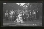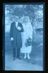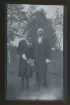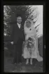 "Linnea och Harry Fredriksso f. 1909, 1909 (skogsarb)" Porträtt av ett brudpar.