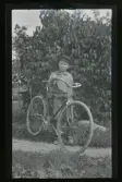 "Axel Karlsson, Skarpåsen." Pojke med cykel.