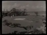 Vy över Karlsborgs fästning, från Vätterns strand, omkring 1935. Text vid foto: "Karlsborg"