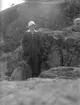 Ruben och Christiane Liljefors dotter Marit med kattunge sitter ute på berghäll, sannolikt i Sverige