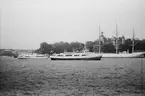 Foto i svartvitt visande Västan och Drottningholm för upprustning vid mälarvarvet, Stockholm, 1973-02.