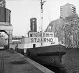 Foto visande passagerarmotorfartyget "VÄSTAN" av Vaxholm på slipen Mälarvarvet, Stockholm, 1973-03-06.