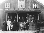 Assar står längst t.v. Elsa sitter på stolen. Inga sitter t.v. och Lars-Erik sitter på bordet.