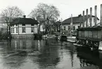 Snömodd och översvämning bland annat i Varberga 1 februari 1966 Kvinna och traktor i vattensamling på vintrig gata