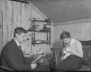 "Jag och Agda i arbete på mitt rum. Blixtljus f. 18 6/12 1916, Foto R. L."