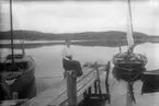 Gustafsberg. Segelbåtar i Byfjorden. Stämplad i vänstra hörnet: Maria Lundbäck Uddevalla. 1910.