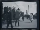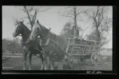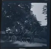 "Trädgårdsdrängar." Tre män i en släde dragen av häst.