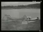 Ångermanland, Nätra sn., Ulvön. Fiskebodar och båtar. Teckning av Ferdinand Boberg.