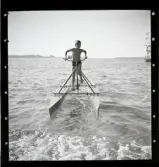 539 Söder. Två unga män sitter på gatan i en korsning, lutade mot ett staket.