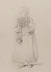 "Märta Thuas dotter från Gerrestads härad" Blyertsteckning av kvinna i helfigur dräkt , storformat av Otto Wallgren