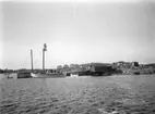 Tryckt text på kortet: "GRAVARNE. Sjöbodar". Notering på kortet: "Sjöbodar innanför Fiskekär ca 1930".