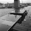 Båtar och pråmar på floden Moldaus östra sida. 50°05'14.7\"N 14°24'49.7\"E. Tjeckoslovakien-Ungern-Österrike 1935.