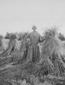 Nårunga. Skördearbete. Drängen Algot Leandersson till höger.