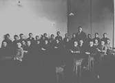 Matte Expr. i Norrbyskolan 8 december 1967 Elever sitter i skolbänkar i förgrunden i ett klassrum på Norrbyskolan under en matematiklektion. De plockar med undervisningsmaterial. De är klädda i långärmade tröjor.