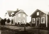 Flygfoto över stationen 1914 utbyggdes bangården (KFJ anslutning). Stationshuset, som uppfördes 1879, påbyggdes 1920 med bostadslägenheter å båda gavelpartierna. (Kil - Fryksdalens Järnväg )