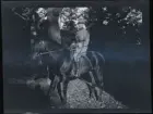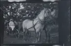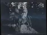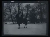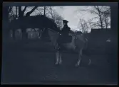 En man till häst på tomten till familjen Morthensens villa Solveden, Djursholm.