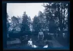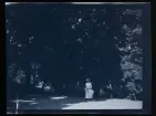 En kvinna sitter i trädgården till familjen Morthensens villa Solveden, Djursholm.