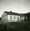 Repslagargatan mot söder, i kvarteret Kyrkbacken 2, Hudiksvall. Till vänster syns en låg byggnad med en stor port. I förgrunden ett tegeltak med skorstensrör.