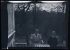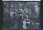 Syskonen Sven, Elsa och Gudrun leker framför familjen Morthensens villa Solveden, Djursholm.