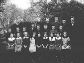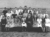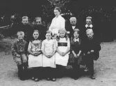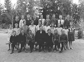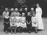 SKOLKLASS FRÅN HUBBERUDS SKOLA UPPSTÄLLDA FÖR FOTOGRAFERING TILLSAMMANS MED SIN LÄRARINNA, OTTILIA RUD.