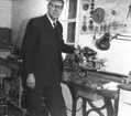 Interiör av snickeri på Centrala flygverkstaden Malmslätt, tidigt 1930-tal. Flygplansroder i förgrunden.
