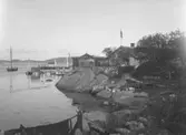 Enligt AB Flygtrafik Bengtsfors: "Stockevik Bohuslän". Enligt text på fotot: "Flygfoto över Stockevik, Fiskebäckskil".