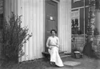 2 vyer av Moster, Signe, Mary m.fl. på trädgårdstrappan. Den 12 Juni 1895.