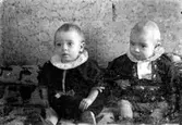 Ateljé. Två små barn i stol. Fotograf: Ellen Kock? Axel Lundbäck m.fl. Gullspångssamlingen. Bilder från Gullspång med omnejd.